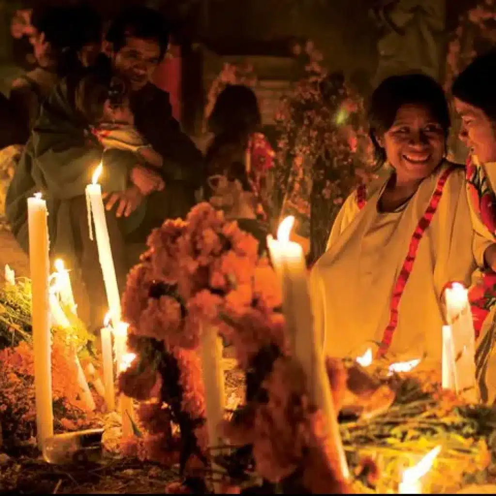 As you might know, this is one of the important dates for Mexicans, this is celebrated every year in the entire country, more less in the same way, yet in the Mazatec nation, this celebration happens in a completely different context. For the Mazatecs, these are the most important dates of the year. It is a profound and unique ritual ceremony where the entire Sierra is involved. The graveyards are fully dressed in offerings, color, flowers, incense, candles, food, music, traditional clothing, songs, and prayers.