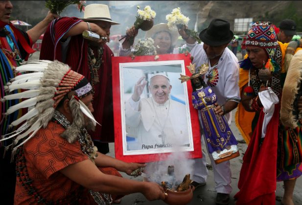 LIMA (Reuters) – Peruvian shamans said on Wednesday they expect good news from the visit of Pope Francis to the Andean nation, and held rituals on a beach near Lima to give him strength to fight against accusations of sexual abuse that have plagued the Roman Catholic Church.